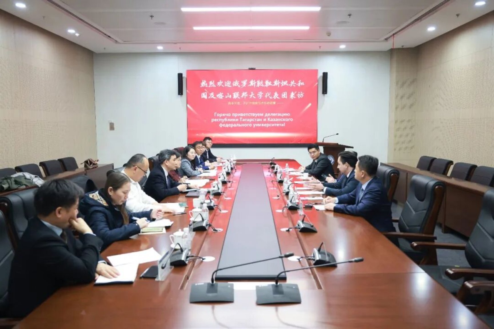 第二站,代表团前往中国石油大学(华东)访问交流。学校党委书记吴强明亲切会见代表团一行,对俄罗斯鞑靼斯坦共和国长期以来与中方开展教育科技合作表示高度赞赏,并向俄方嘉宾赠送纪念品。副校长戴彩丽及国际合作与交流处等相关部门负责人陪同参加活动。代表团参观校史馆,全面了解学校发展历程、学科优势与国际合作成果。在新图书馆第四会议室座谈中,双方围绕能源科技联合研发、油气工程学科共建、高层次人才联合培养、青年教师学术交流等领域进行精准对接,就推动科研平台共建、联合申报国际合作项目、开展学生联合培养等事宜深入交换意见,进一步搭建起中俄能源领域教育合作的重要桥梁,为后续务实合作奠定了坚实基础。