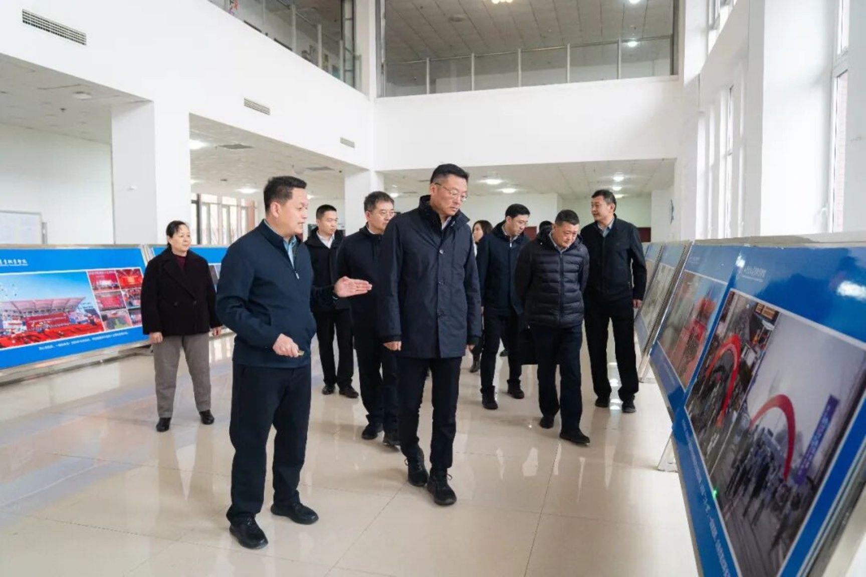 座谈前,江联军局长一行在董事长李京平的陪同下实地考察综合楼规划沙盘处,详细了解学校整体布局、基建规划及发展蓝图。沿途参观了人工湖、图书馆、桃李巷等校园景观,感受学校浓厚的文化氛围与优美的育人环境。调研组重点考察了医养健康学院实训室,实地查看了康复治疗、智慧康养等实训设施配置与教学开展情况,对学校产教融合的实训教学模式给予高度评价。