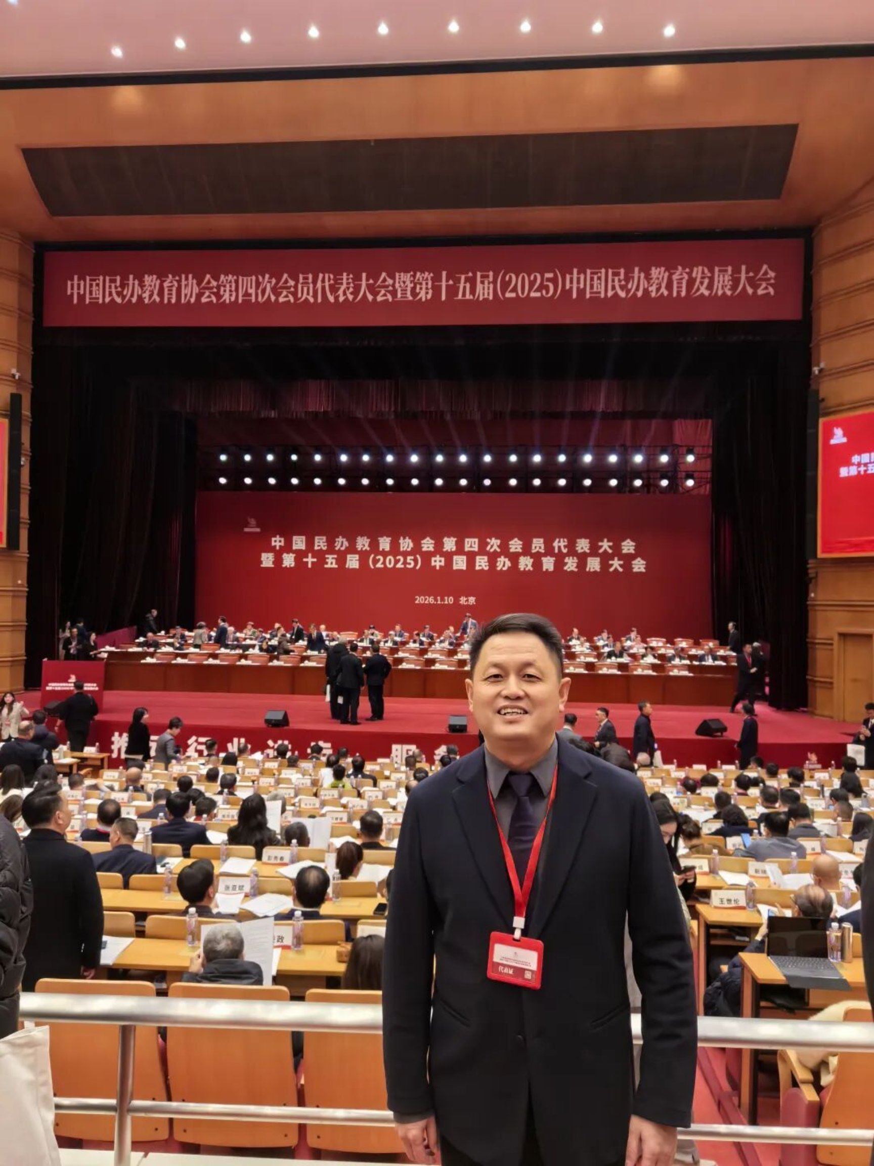 1月10日,中国民办教育协会第四次会员代表大会暨第十五届(2025)中国民办教育发展大会在北京隆重举行。山东文化产业职业学院董事长李京平凭借学校在民办教育领域的突出实践与行业认可度,首次当选中国民办教育协会会员代表,受邀出席本次盛会,与全国同仁共同见证行业发展新节点。