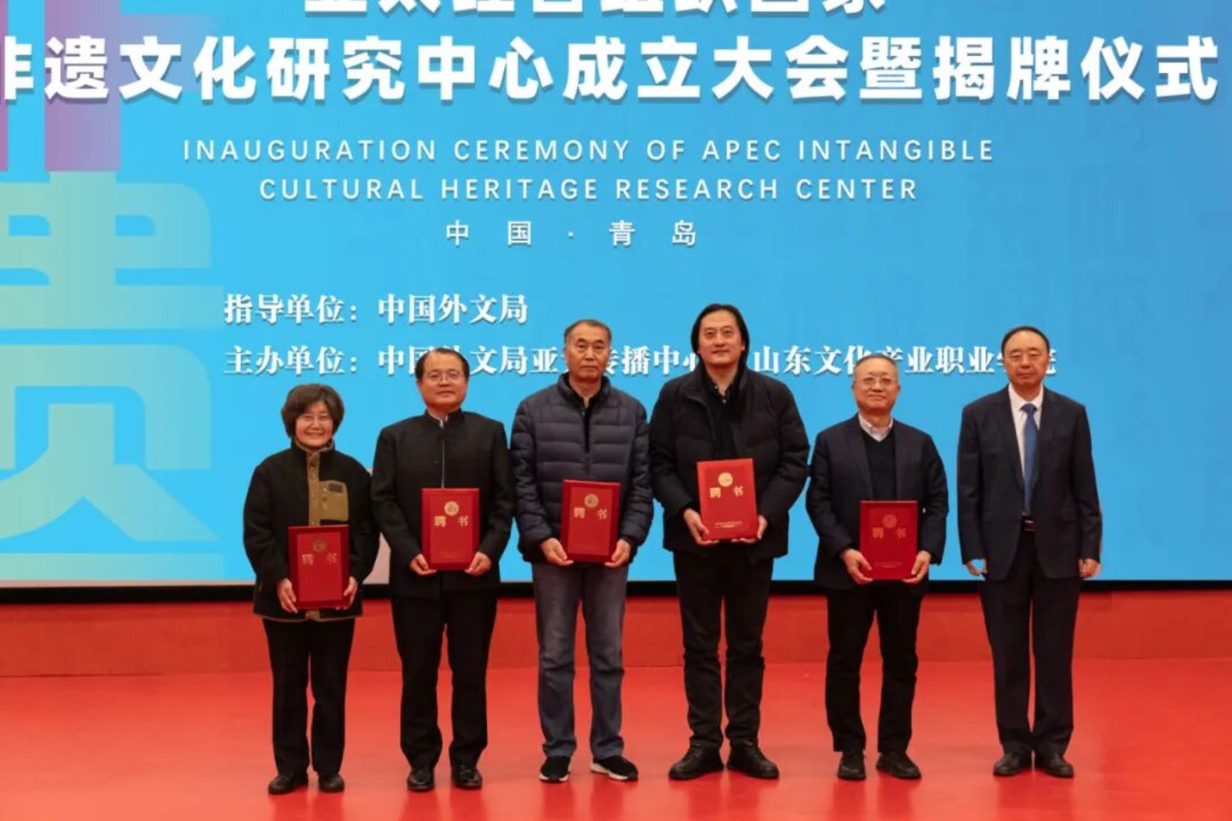 中国外文局亚太传播中心主任杨建平、山东文化产业职业学院董事长李京平共同为“亚太经合组织国家非遗文化研究中心”揭牌,标志着亚太地区非物质文化遗产的保护、传承与创新工作开启崭新篇章。