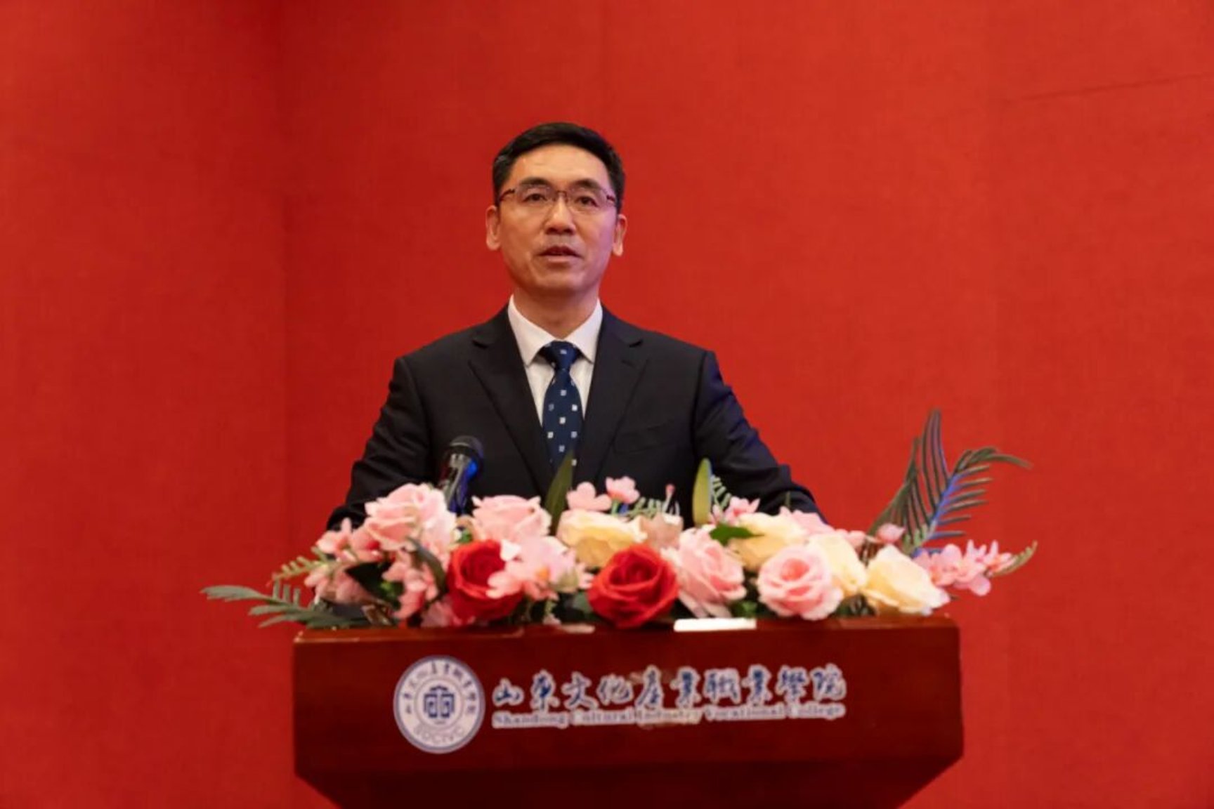 中国外文局亚太传播中心主任杨建平、副主任王汉平,山东省教育厅思想政治工作处处长陈成标,莱西市委常委、统战部部长、副市长张鹏,山东文化产业职业学院董事长李京平、党委书记田艳玲、校长曹胜强等领导嘉宾出席仪式。来自APEC成员国的非遗专家、国内非遗传承人群体、高校学者及各界代表齐聚现场,共同见证这一文化盛事。大会由田艳玲主持。