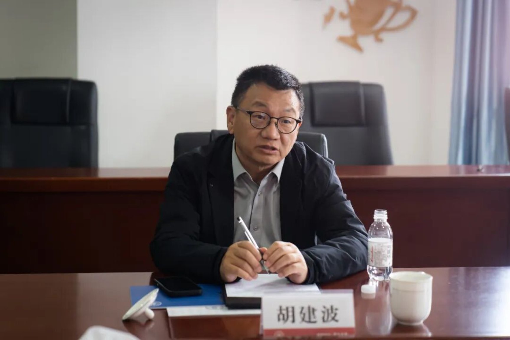 胡建波对学校的热情接待表示衷心感谢,并对我校清晰的办学定位、鲜明的办学特色和良好的发展态势给予高度评价。他围绕新时代民办教育发展形势、校园高品质建设、内涵式发展、精细化管理与品牌塑造等方面作交流分享,强调民办高校应坚定发展信心,把握政策机遇,坚持长期主义、教育向善,走特色化、精品化、高质量发展道路,以优质办学与核心竞争力赢得发展空间。座谈期间,双方还就民办教育社会责任、县域职业教育发展等议题深入交换意见,达成多项合作共识。