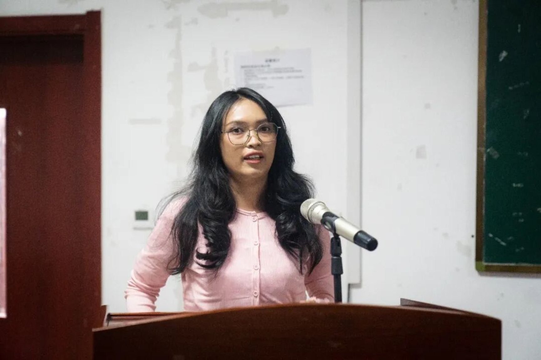 教师代表崔鲁平老师发言,承诺将以饱满热情、专业素养投入教学,用心陪伴、耐心指导,助力国际学生提升语言能力、感受中华文化魅力。