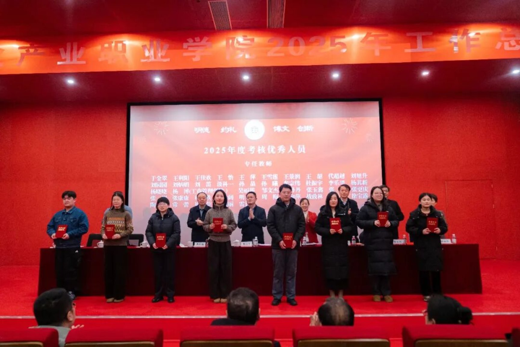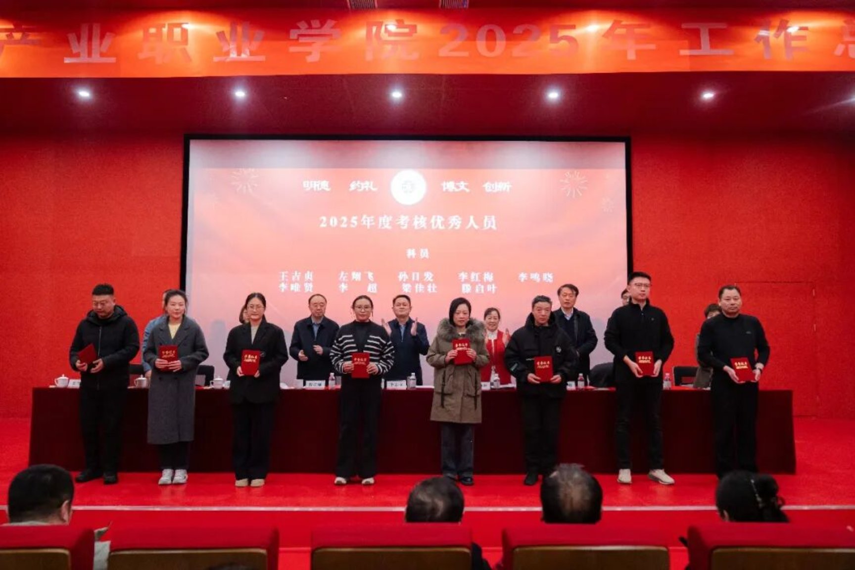 校长曹胜强作题为《凝心聚力 向高而行 奋力谱写学校高质量发展新篇章》的工作报告。报告全面回顾了2025年学校在办学治校、立德树人、人才培养、专业建设、师资队伍、产教融合、科研创新、开放办学、内部治理等九大领域取得的显著成效,指出学校已圆满完成 "十四五" 规划主要目标,为长远发展奠定坚实基础。