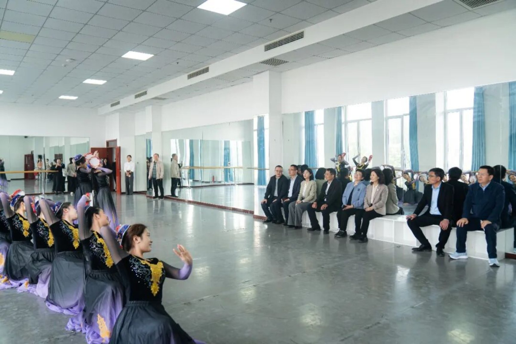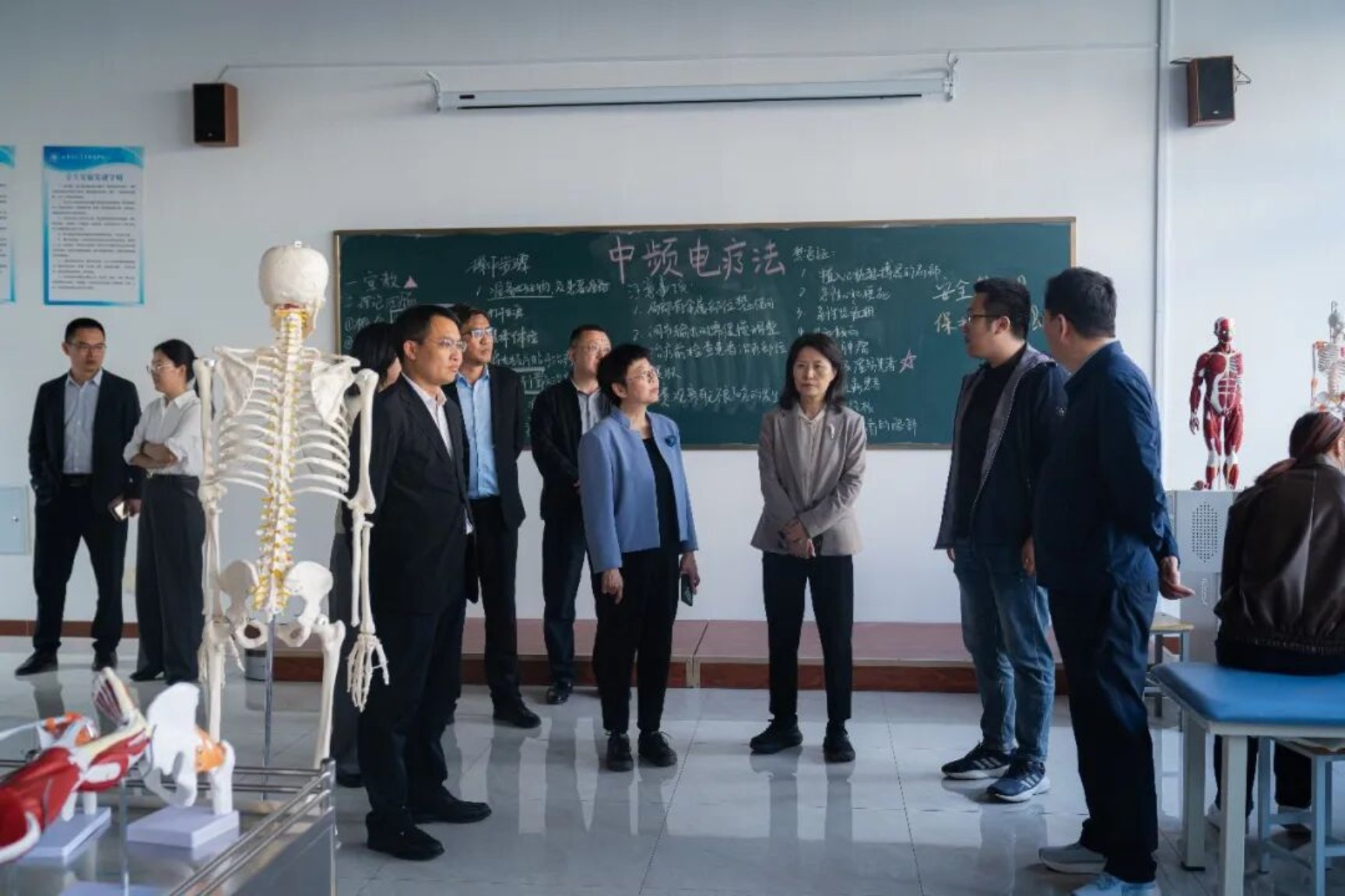 孔静珣一行先后实地走访参观了学校康复治疗专业实训场地、校园规划沙盘、非遗工作室等场所,现场观看了民族舞特色表演,详细听取了学校办学发展、专业建设布局、实训教学开展、校园文化建设及特色育人成果等方面的工作汇报,全面深入了解学校办学特色与发展成效。