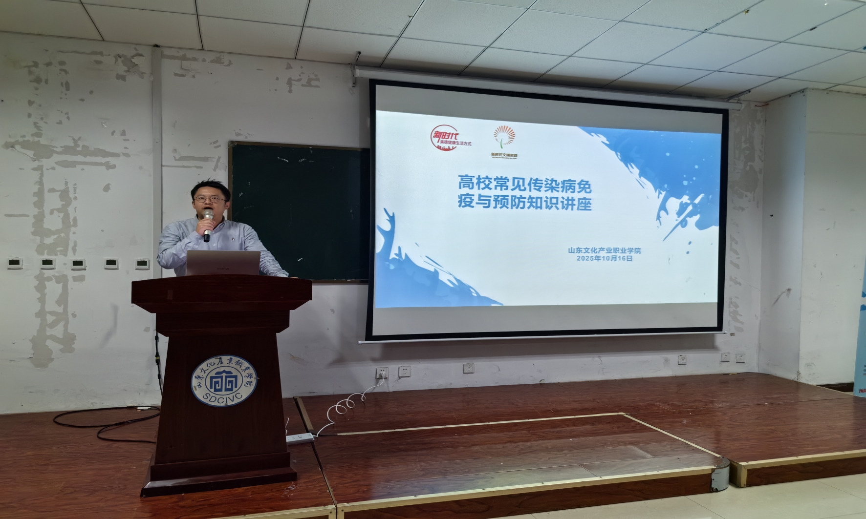 2025年10月16日,高校常见传染病免疫与预防知识宣传讲座在综合楼121教室顺利举行。此次讲座由黄建凯老师主讲,各学院学生代表参加。