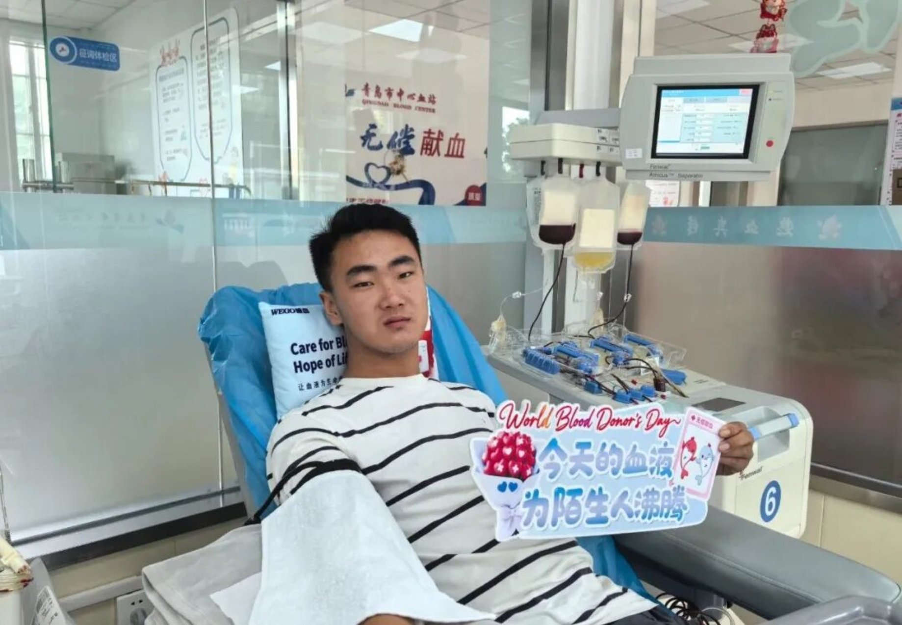 董梓豪在青岛市中心血站莱西献血服务部第一次捐献机采血小板时,通过工作人员了解到,血小板广泛应用于白血病、再生障碍性贫血、化疗患者以及出血性疾病患者的临床救治,且捐献间隔期仅为两周。从此,无论身处校园还是假期回到家乡泰安,他无私奉献的脚步从未停歇。