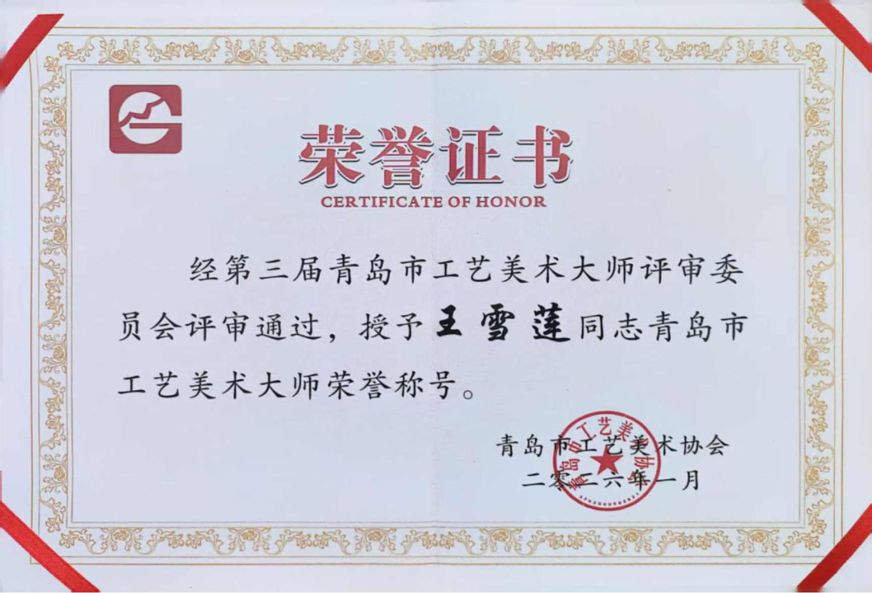 “青岛市工艺美术大师”是青岛市工艺美术领域市级最高荣誉,由青岛市工艺美术协会在政府相关部门指导监督下开展评审,代表青岛工艺美术行业权威认可。