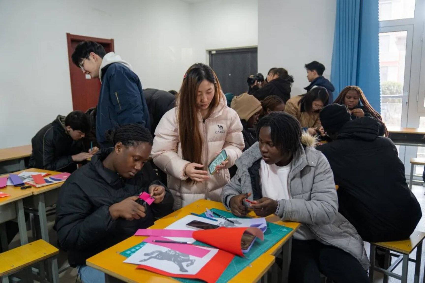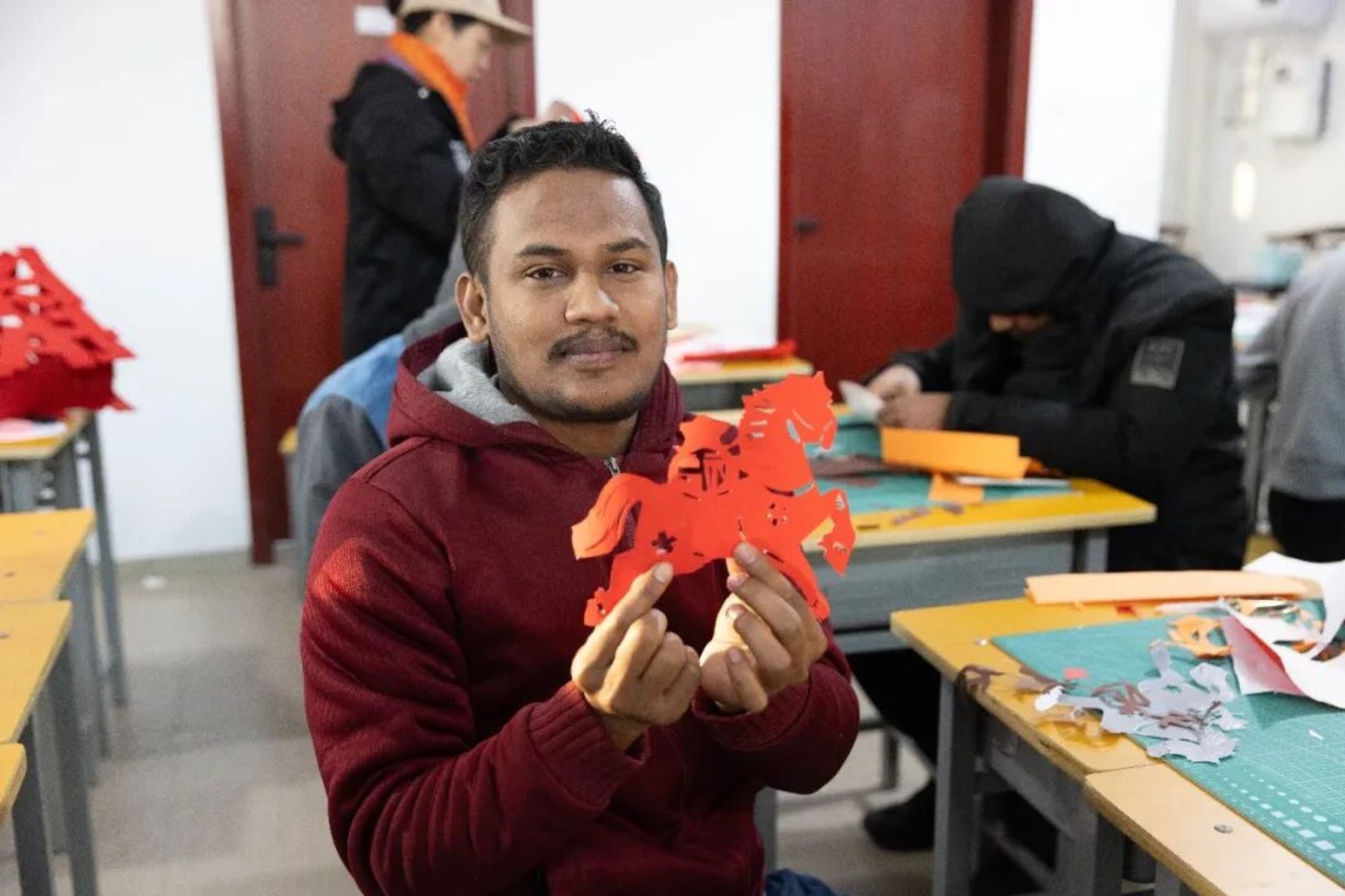 红纸裁春意,指尖剪吉祥。年味渐浓,一场以马年新春为主题的非遗剪纸体验活动——“指尖非遗・跨越语言的文化对话——马年新春剪纸文化共赏体验日”,在山东文化产业职业学院温情启幕。多国留学生与中国师生齐聚一堂,以剪刀为笔、红纸为笺,在非遗传承人的指引下,解锁剪纸艺术的独特魅力,共赴一场跨越国界的文化之约。