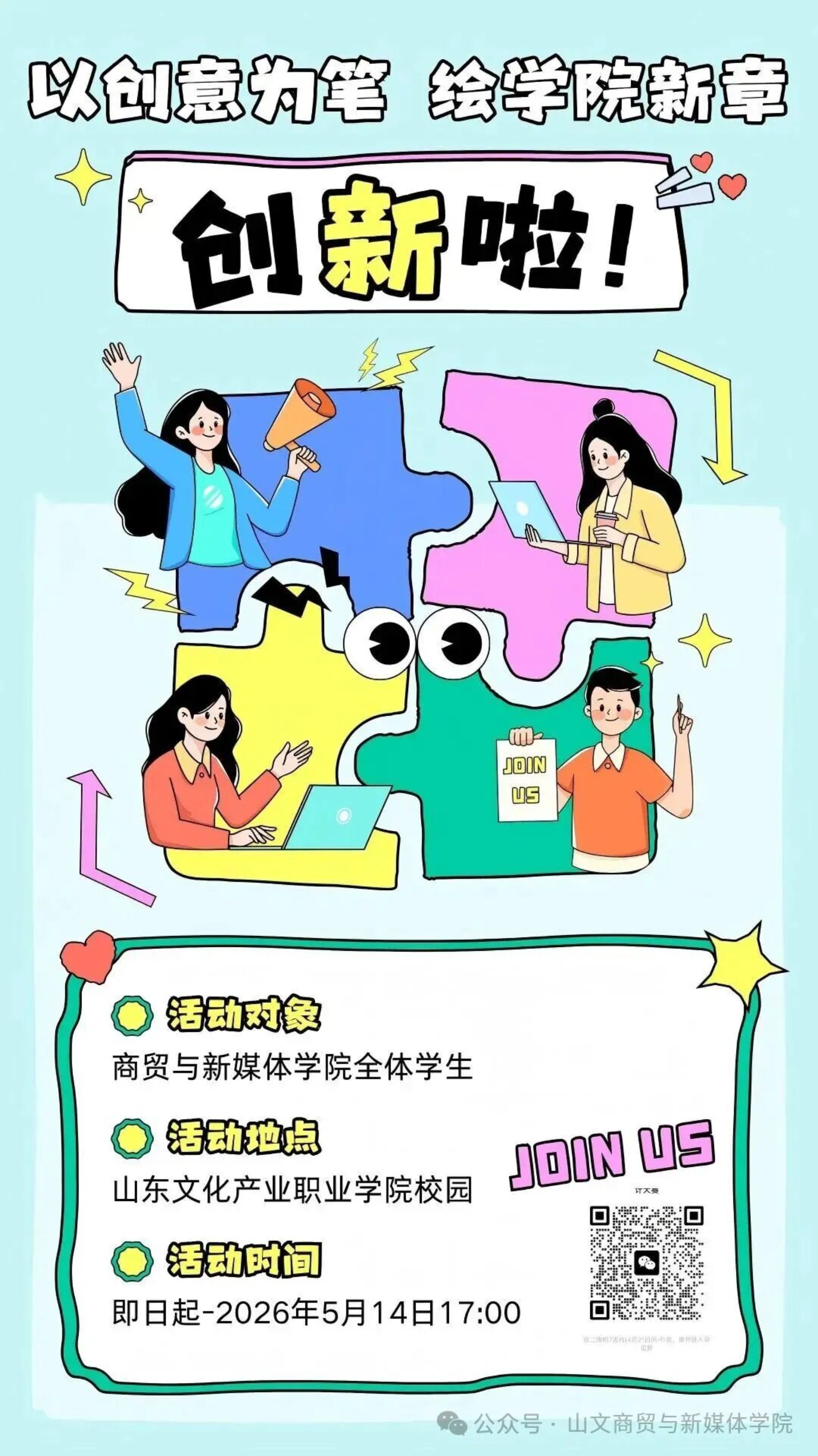一笔勾勒学院魂,一稿承载传媒情。你的设计,将成为商贸与新媒体学院的全新视觉名片!期待全院学子的精彩创意,让我们携手共创学院美好新未来!