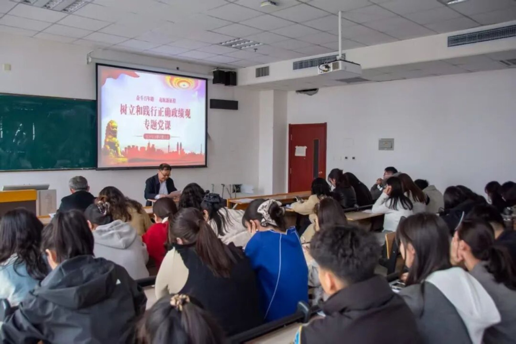党课现场座无虚席,全体党员教师凝神专注、认真研学,在沉浸式学习中深化思想认知、凝聚奋进力量,以饱满热情投入专题学习,切实将正确政绩观内化于心、外化于行。
