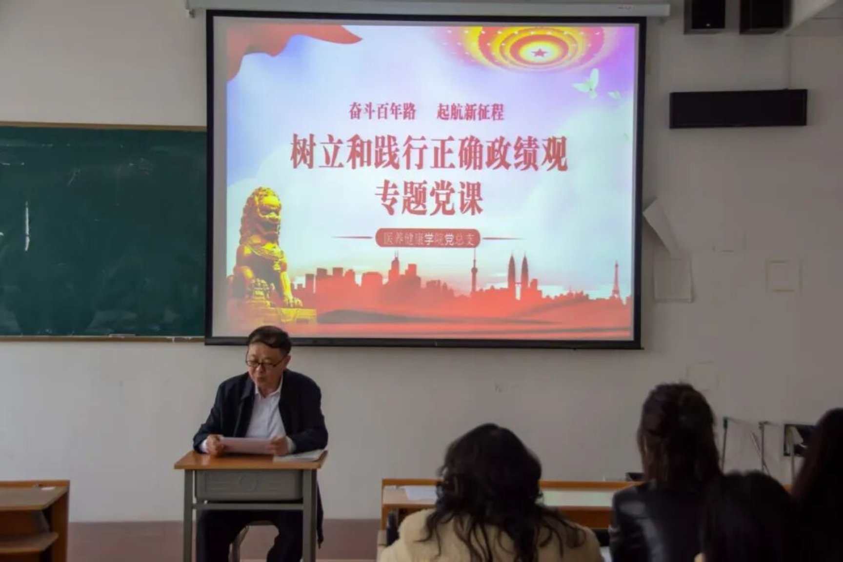 2026年3月27日,医养健康学院院长、党支部书记张世军,为全院党员教师开展“树立和践行正确政绩观”专题党课。党课立足学校升本关键阶段,结合学院专业建设实际深刻阐释育人初心。课堂厘清政绩认知,明确以育人实效作为检验工作的根本标准,号召教师摒弃表面文章、深耕内涵建设。此次学习深化思想引领,凝聚奋进共识,为学院冲刺升本、推进高质量发展注入坚实动力。
