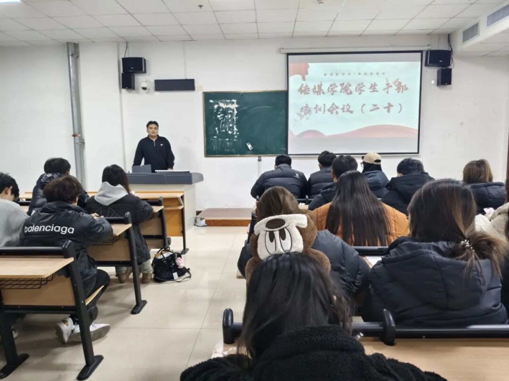以学促干砺青春,实干笃行显担当。为破解学生工作中的实际难题,提升干部团队协作与实操能力,传媒学院于2025年11月26日召开学生干部培训会议。本次会议特邀马永浩老师指导,全体学员共同参与,为今后高效开展校园服务工作蓄力。