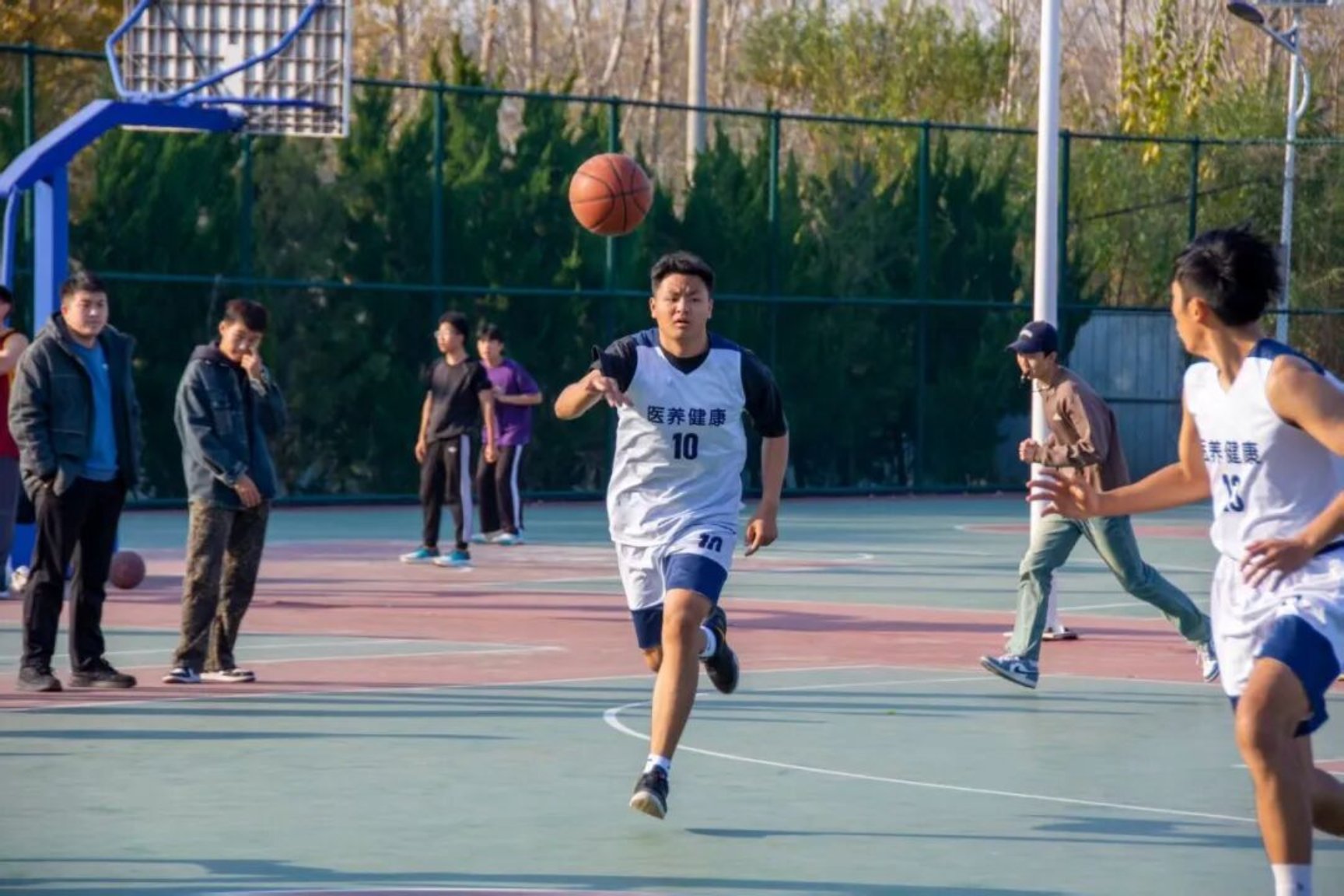 当阳光洒向赛场,当篮球撞击地面的节奏唤醒全场热情,篮球赛终于在万众瞩目中拉开帷幕。开幕式上,各支队伍的昂扬姿态点燃期待。初赛赛场,球员们的拼搏身影定格无数热血瞬间,这不仅是一场竞技赛事,更是一场关于热爱、协作与突破的青春盛宴。