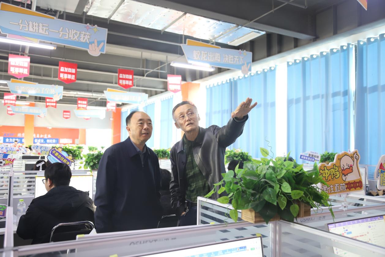 校领导一行实地考察了数字经济学院教学环境,软硬件建设情况,重点参观了“青云栈 - 企业模拟仓”实训基地与 “腾雲谷- 精英加速器”产教融合实践平台。详细询问了实训项目开展、学生收获、企业导师驻场指导等情况,对学院引产入教,工学交替,真岗实干的产业学院特色育人范式表示赞赏。