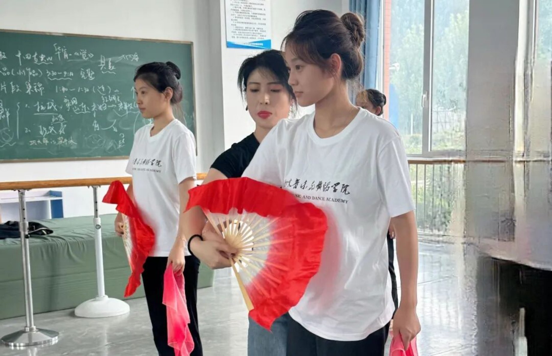 另一边,扮演“乐大夫”的师生们也都在认真揣摩角色精髓。同学们始终牢记老师的话:“眼睛要有神,让观众感受到你的状态和热情,做动作不要飘,要自信,放开了做,细节很重要。”