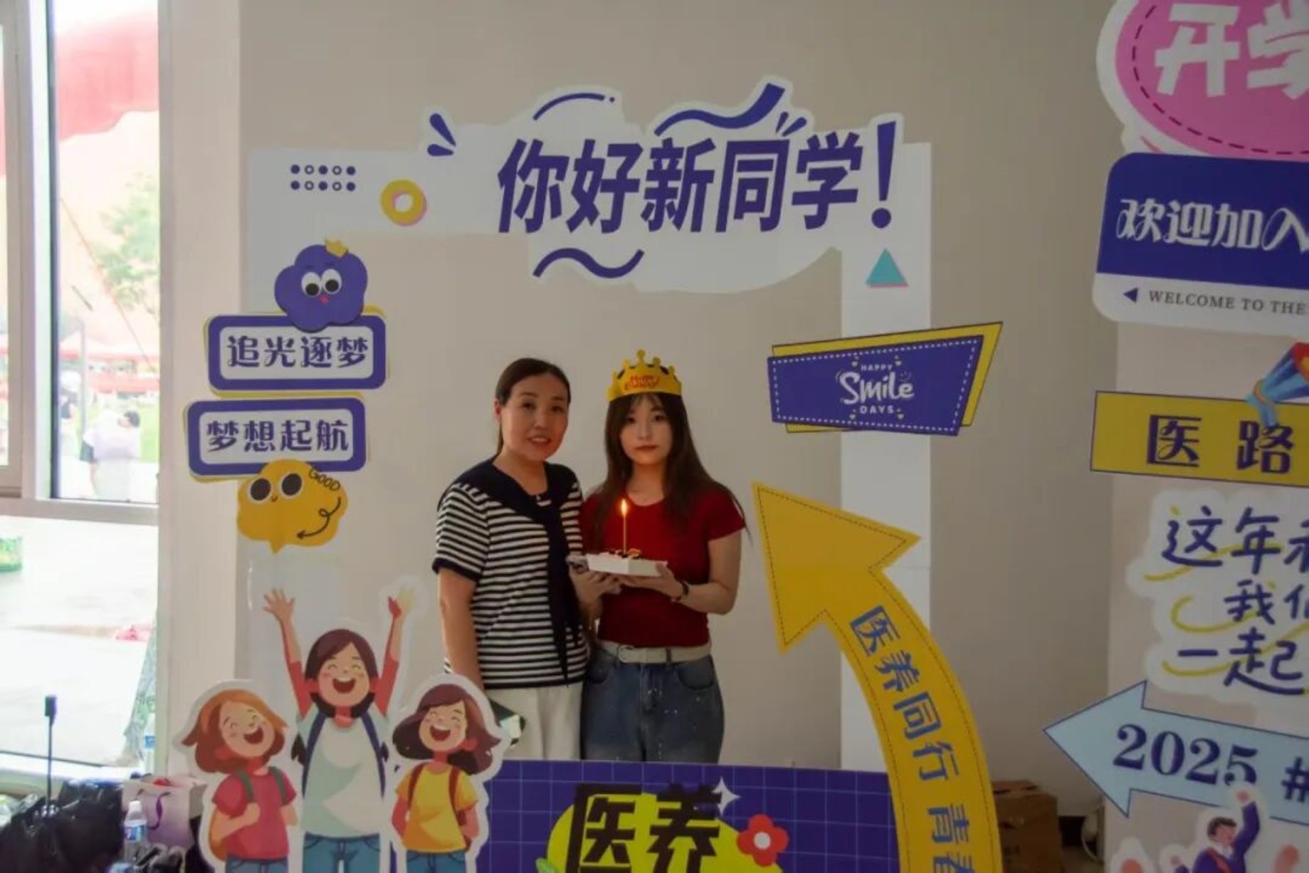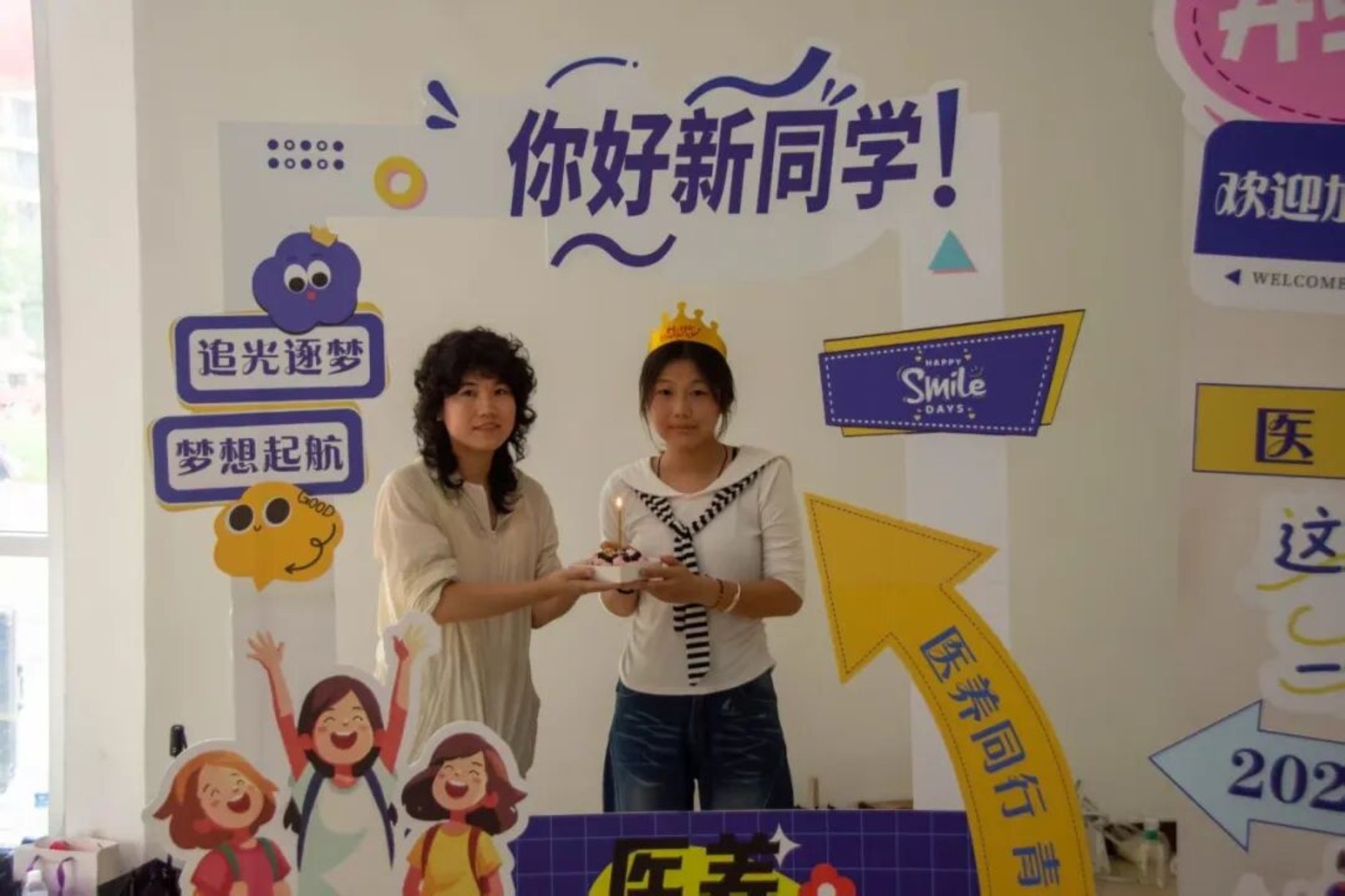 今天不仅是开学日,恰好也是7位新同学的生日,学院早已悄悄准备好定制蛋糕。7位新同学收到了医养健康学院为他们准备的“专属浪漫”。他们在学校的第一次生日,当志愿者们推着蛋糕车走到他们面前,唱起生日歌时,惊喜和感动写满了每个人的脸上。