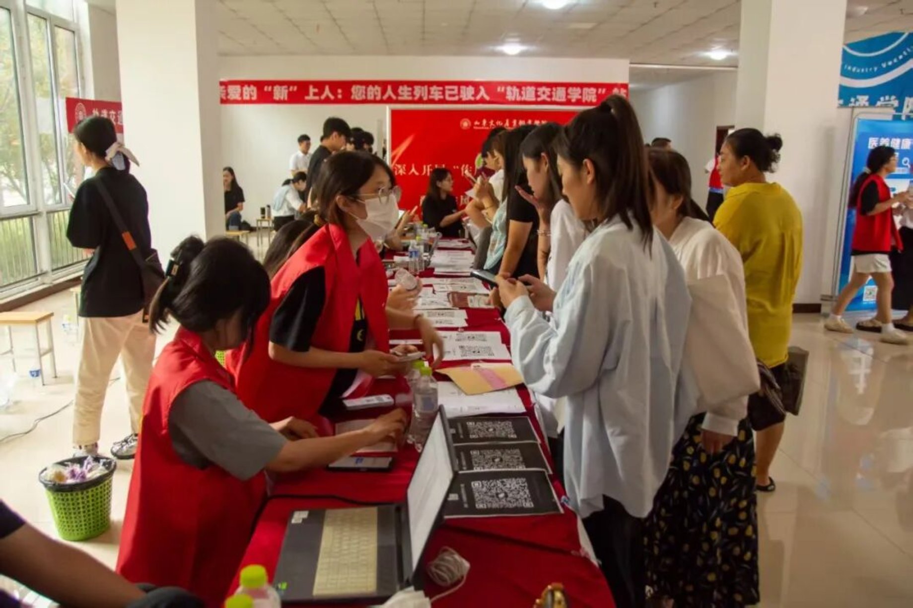 迎新当日,校园内彩旗飘扬,横幅高挂处处,充满着热烈而温馨的氛围。校园里穿梭着一群热情洋溢的身影,那便是我们的志愿者们。清晨7点,校园里的“志愿红”早已就位。从校门口的行李搬运、报到流程指引,到宿舍路线讲解、校园卡使用教学,志愿者学长学姐全程一对一贴心服务。