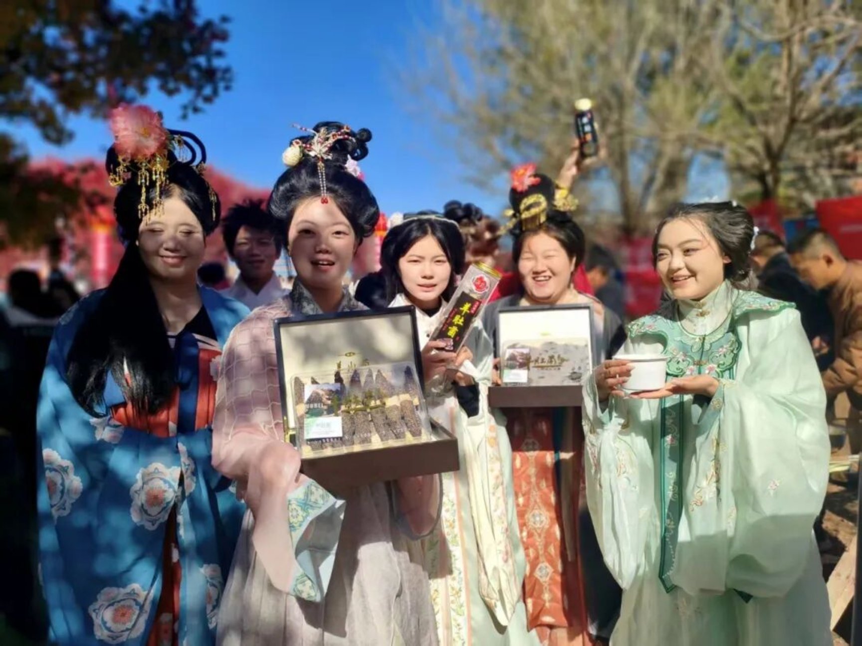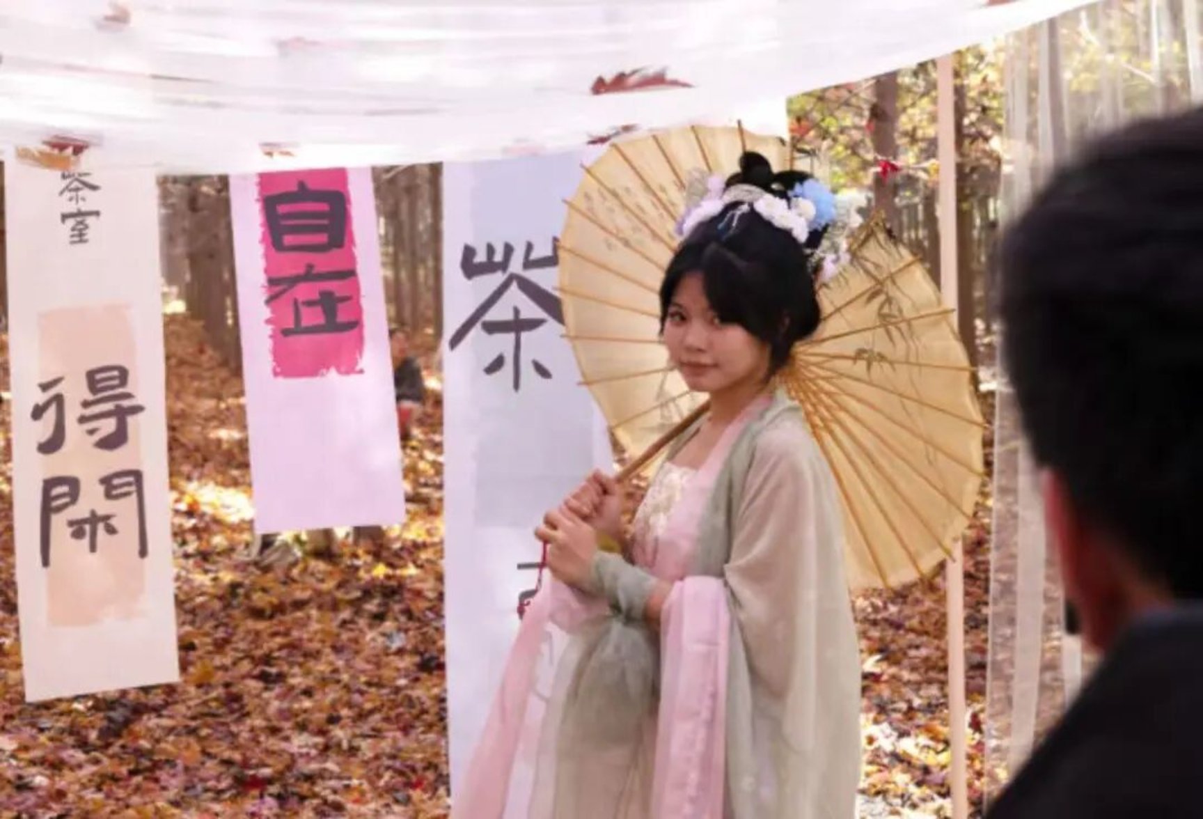 在非遗展示区,沉浸式互动环节成为活动亮点。学子们身着素雅汉服,化身“非遗体验官”式 NPC,通过场景化演绎打造沉浸式体验场景: