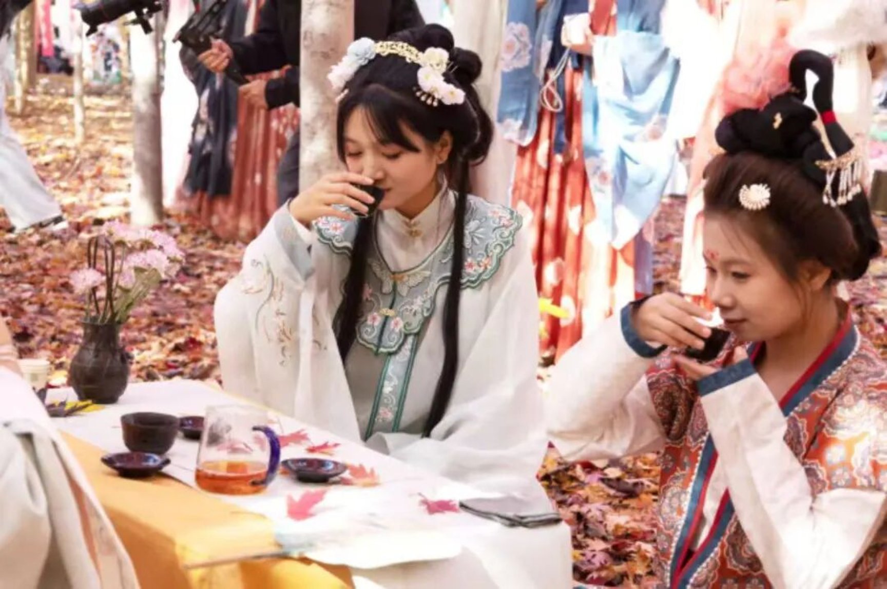 在拓印体验区,他们手持鬃刷,耐心指导游客将枫叶纹样、传统吉祥图案拓印在宣纸或帆布包上,从油墨调配到拓印力度把控,手把手传递传统工艺技巧;枫香茶肆内,学子们则遵循传统茶艺流程,温杯、置茶、注水、分茶,动作行云流水,同时向围坐的游客讲解莱西本地茶文化渊源,邀请大家闭眼品茶香、听枫声,感受“茶与枫”的自然交融。“在指导游客拓印时,有小朋友说‘原来树叶也能变成画’,这种对传统文化的好奇让我很有成就感,也让我更懂如何用大众易懂的方式传播非选。”参与活动的学生代表说道,非遗文化中的纹样、技艺,也为后续传统工艺创新设计课程积累了真实案例。