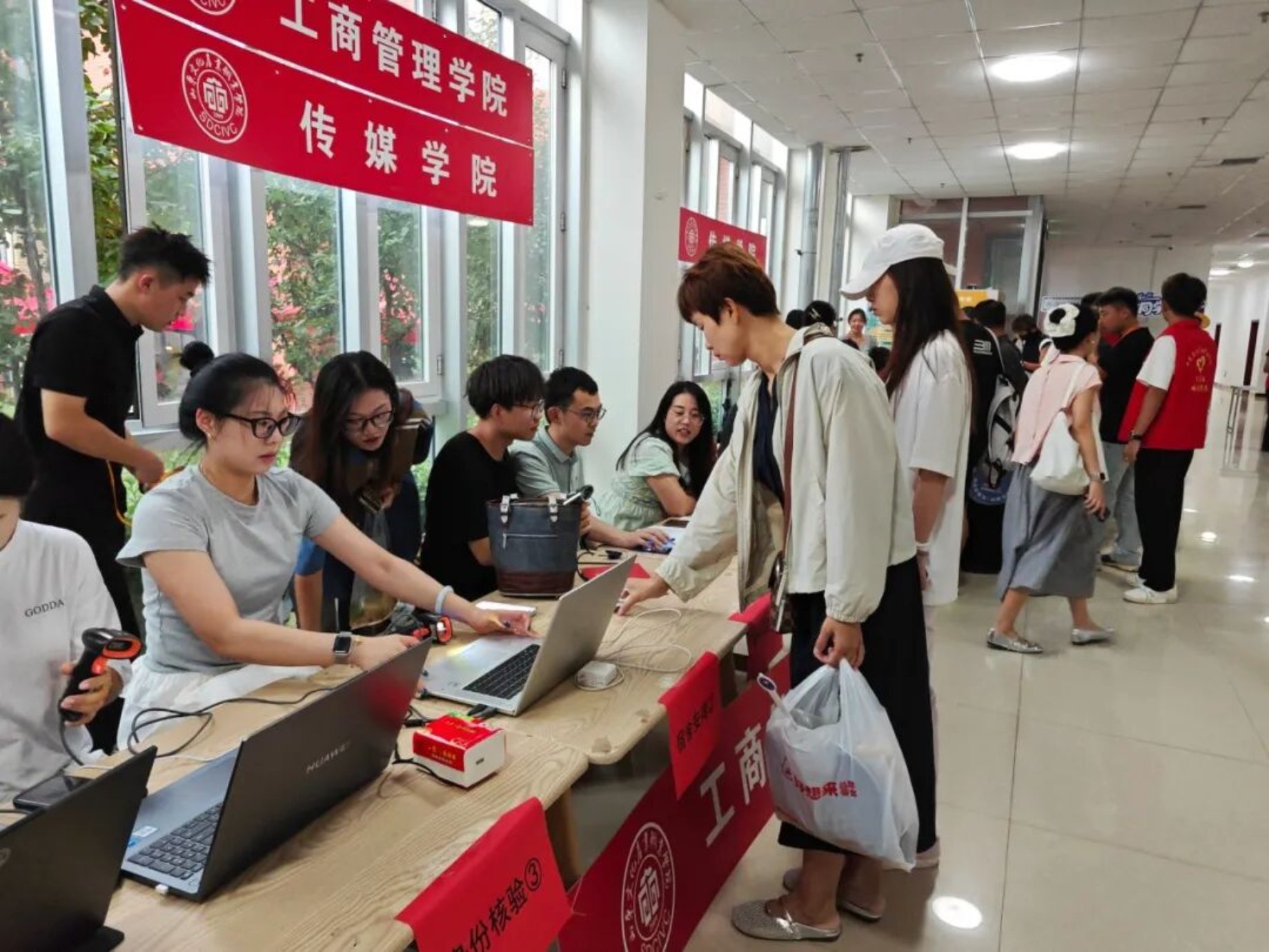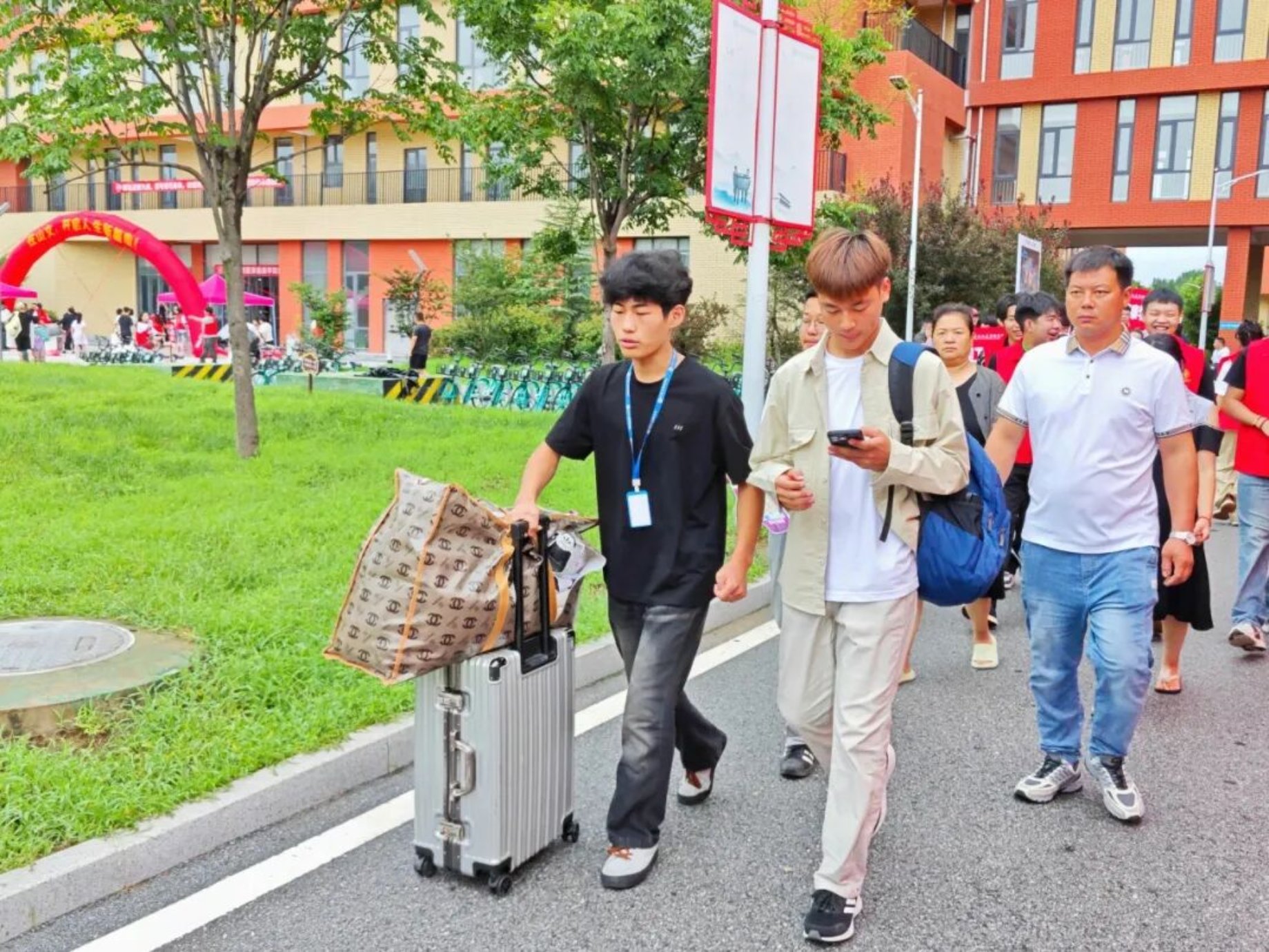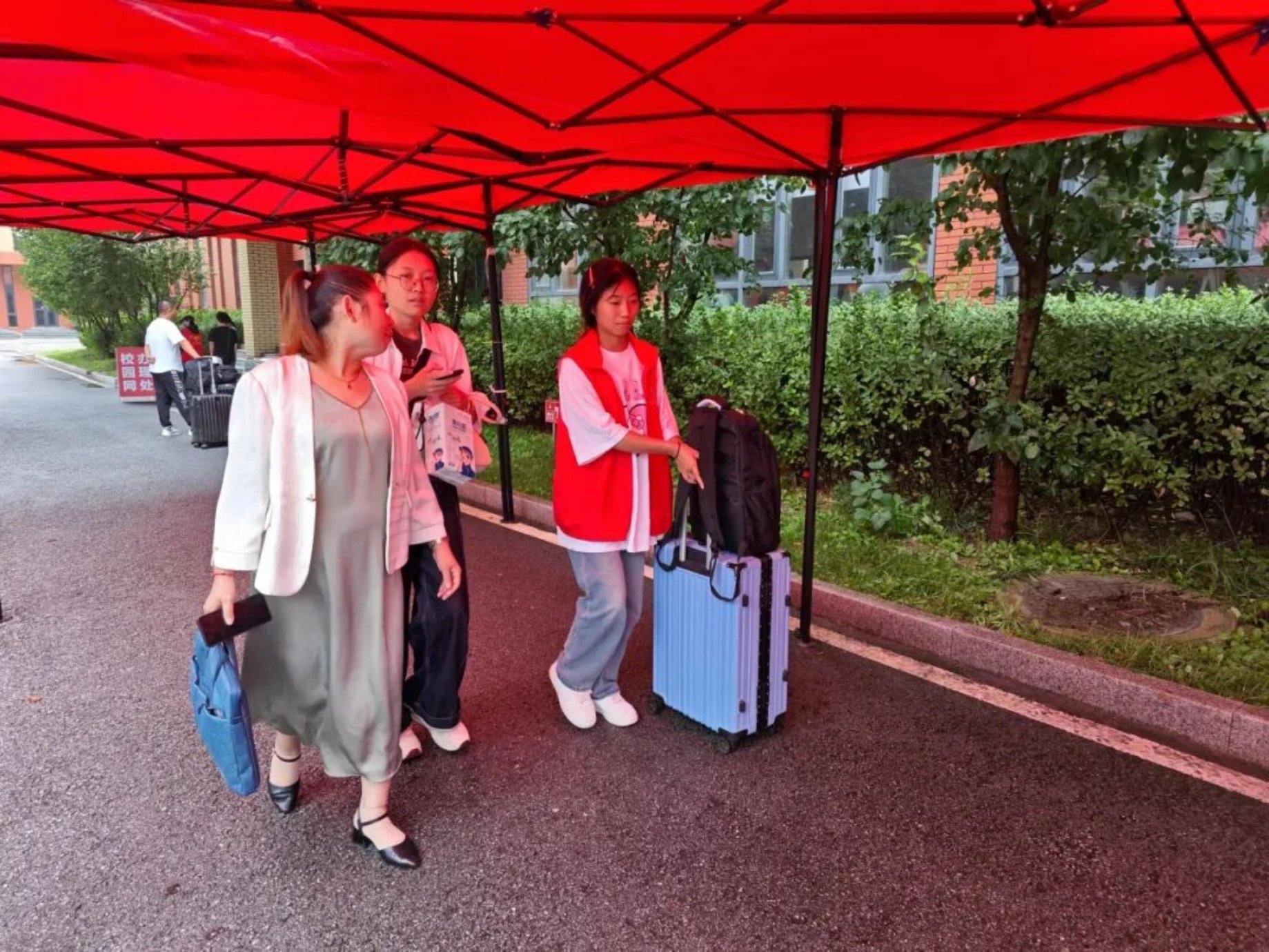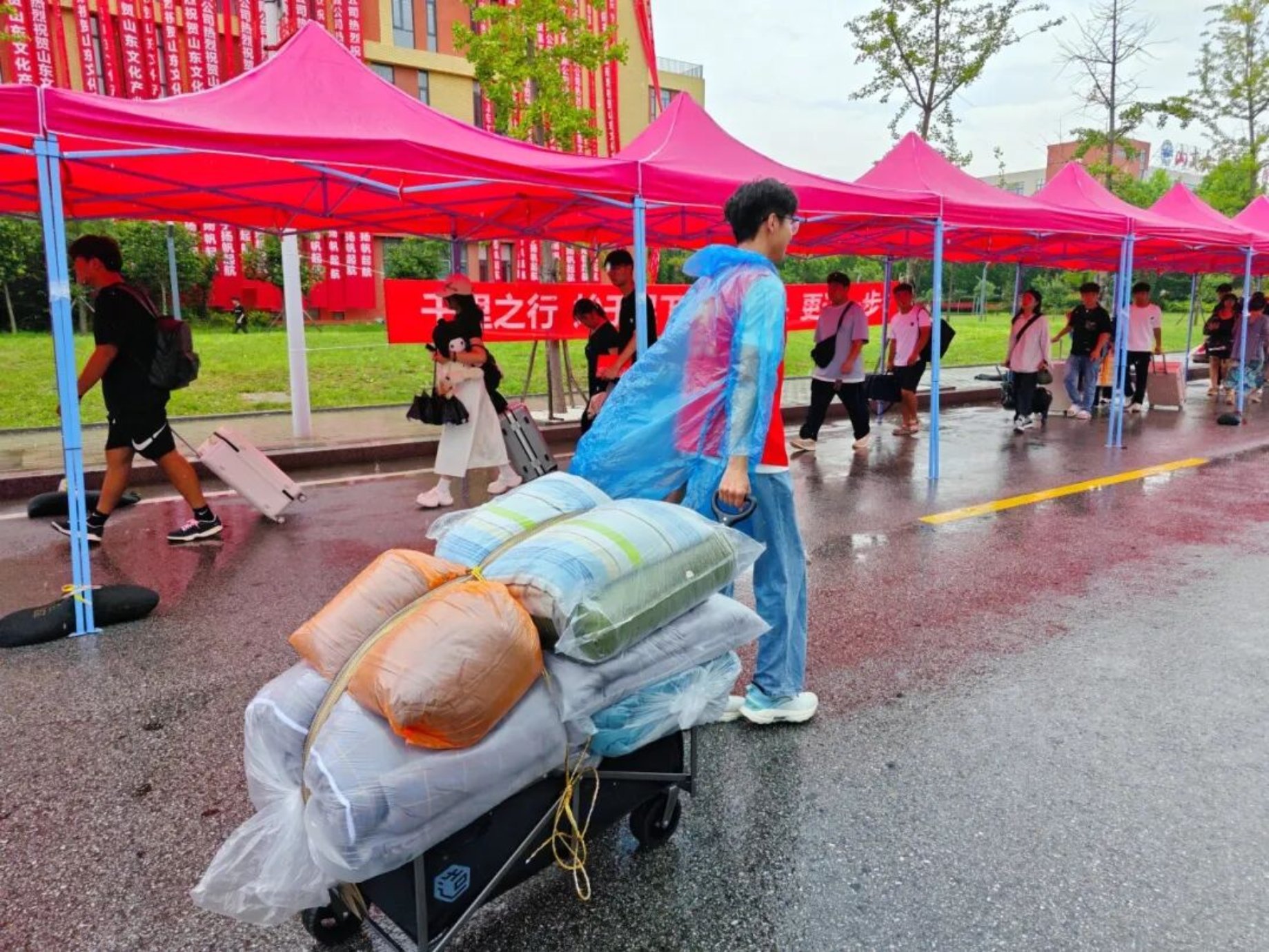 自迎新工作启动以来,从晨光熹微到夜色渐浓,迎新现场随处可见工作人员忙碌的身影。他们严格按照流程指引新生完成报到登记、资料核验、宿舍分配等环节,主动帮新生搬运行李、指引路线,对新生及家长提出的入学问题等也逐一进行解答,用高效的服务为新生带来最温馨的入学体验。