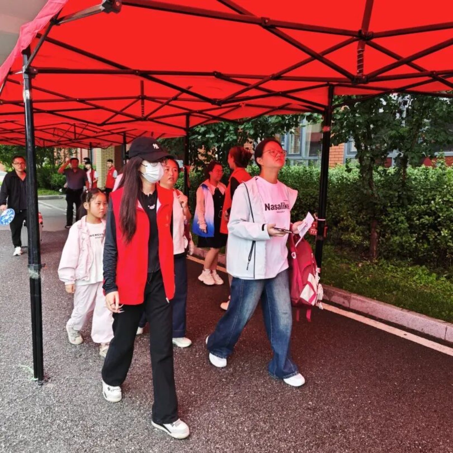 老师们也早早到场,他们耐心细致地接待每一位新生和家长。面对家长的疑虑和学生的好奇,他们时而温声解答家长的疑问,时而俯身细致地整理新生材料,逐项叮嘱注意事项,用严谨与温柔,为同学们的入学第一程保驾护航。