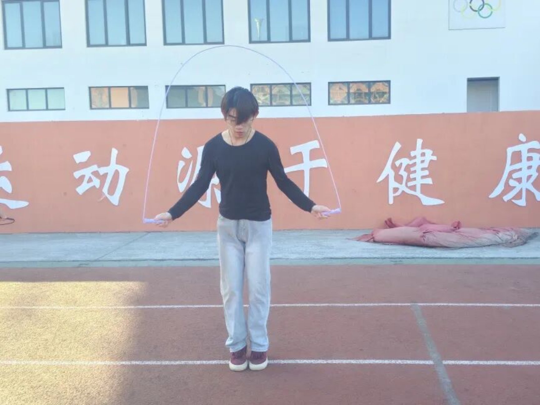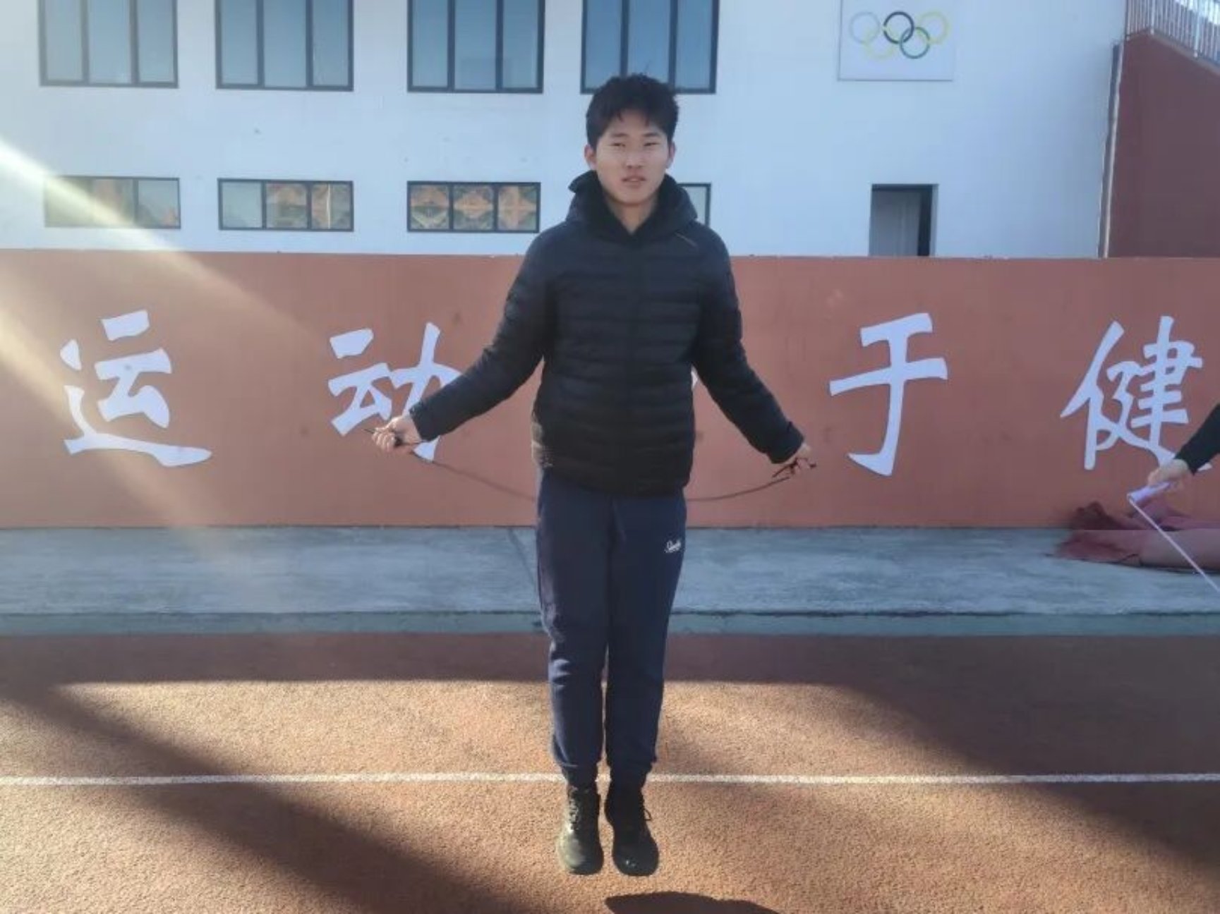 冬日的操场带着几分料峭寒意,却丝毫没有消减同学们的参赛热情。赛前,选手们早早到场热身,有的俯身反复调试跳绳长度,有的原地起跳练习跳跃节奏,只为在赛场上发挥出最佳水平。