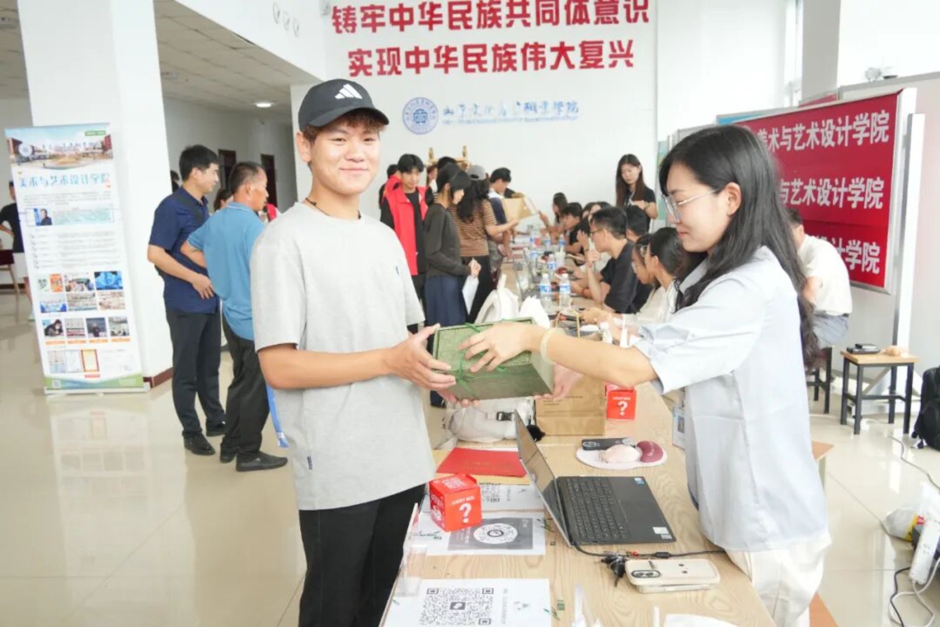 每一位走进山文音乐与舞蹈学院的新生都会开启一份特别的“惊喜盲盒”。打开盲盒,有爱心小风扇、精美笔记本、暖心马克杯、零食小礼包等。新生们获得学院精心准备的盲盒的同时,也接收到了学院大家庭给他们的开学祝福。