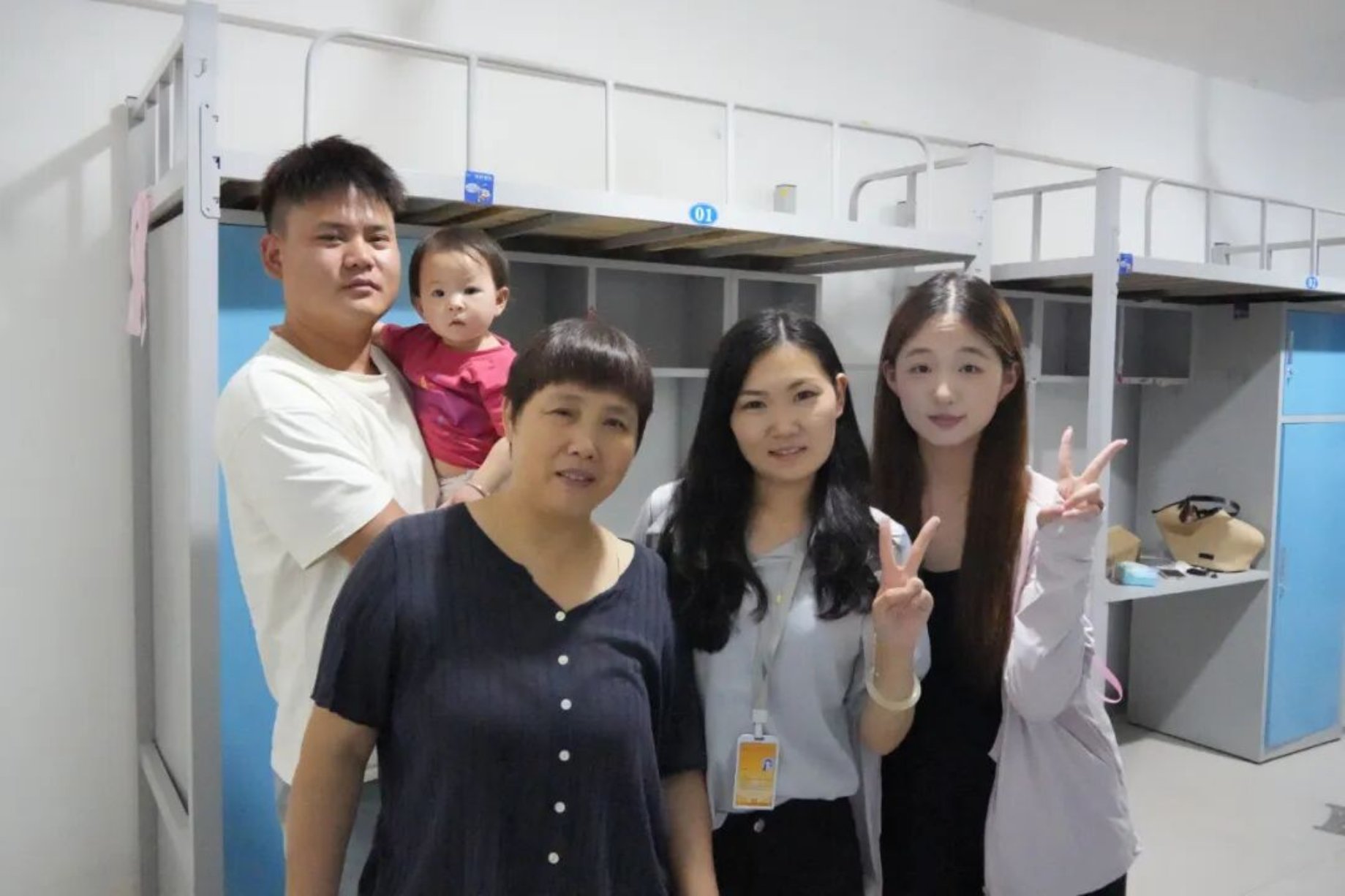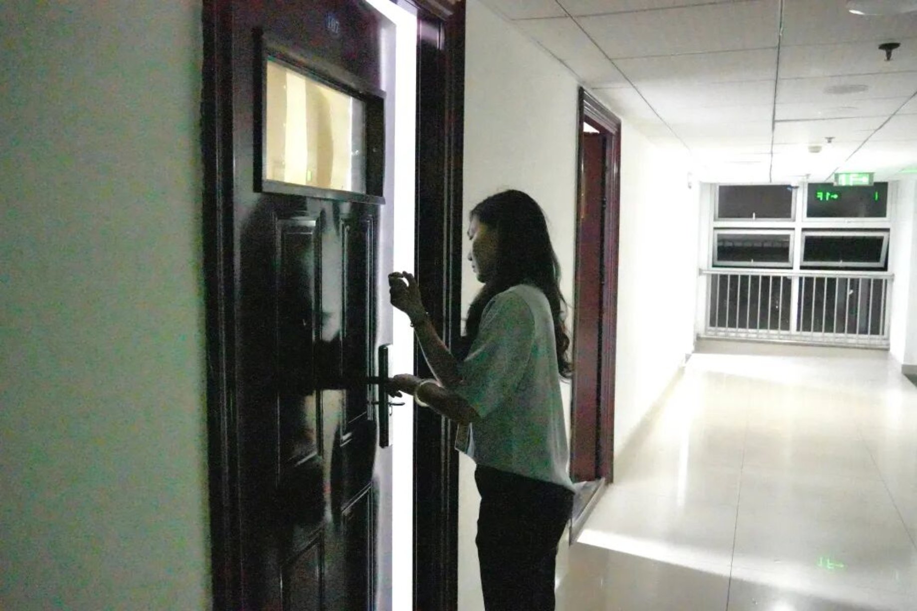 结束了一天的迎新工作,夜幕降临,辅导员走进学生宿舍,向新生传递了来自学院的关怀与温暖。