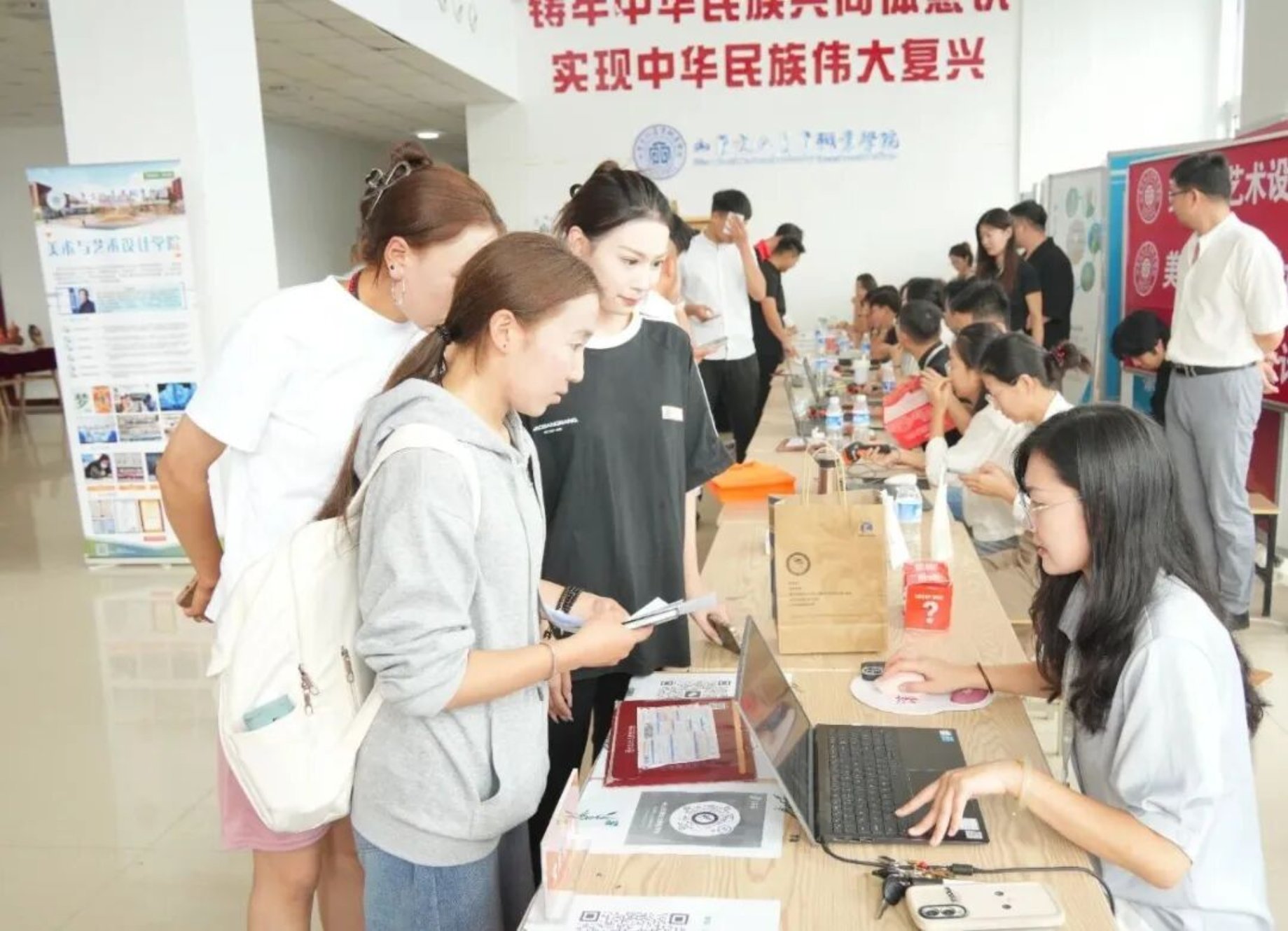 报到现场秩序井然,迎新工作人员耐心引导新生,确保每一位新生高效、顺利地完成报到手续。