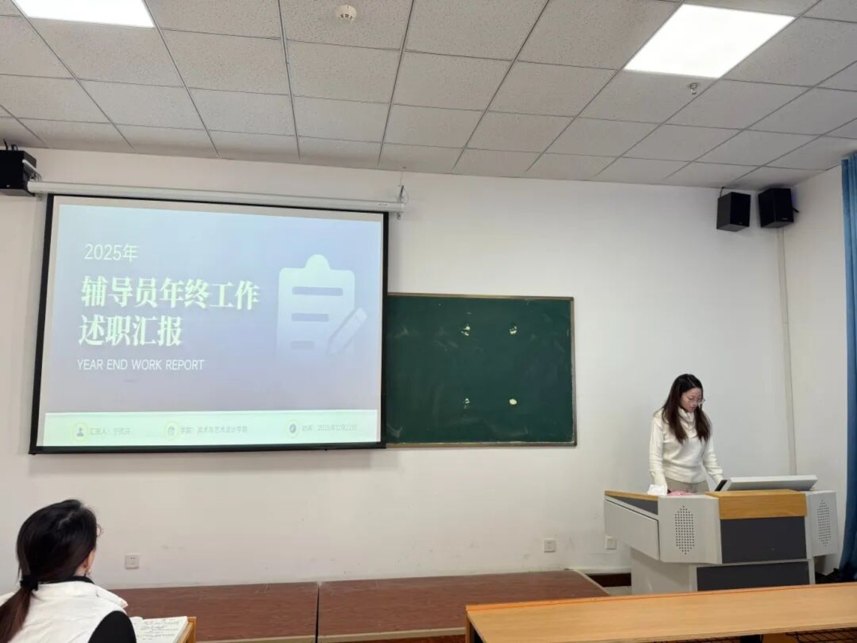 各位辅导员老师依次登台述职。他们结合自身分管工作,从班级建设、思政铸魂、心理健康护航、奖助勤贷精准落实、专业实践与艺术创作指导等具体工作切入,分享了与艺术学子朝夕相处的温暖点滴,总结了在艺术专业特色育人工作中的方法与技巧,也坦诚剖析了工作中存在的短板与不足。述职展现出美术与艺术设计学院辅导员队伍求真务实、潜心育人,以艺术之光点亮学子成长之路的良好风貌。