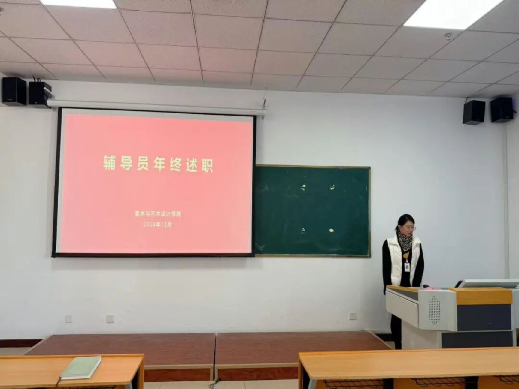 时光荏苒,初心如磐。为全面总结本学期学生工作成效,明确下一阶段育人方向,2025年12月24日,美术与艺术设计学院2025-2026 学年第一学期辅导员工作述职大会于创新楼5312举行。美术与艺术设计学院院长钱品辉、副院长麻玉红,学工处学生教育科科长李阳、军事教育副科长王晓群、资助管理中心负责人胡加乐,美术与艺术设计学院全体辅导员老师莅临大会现场。