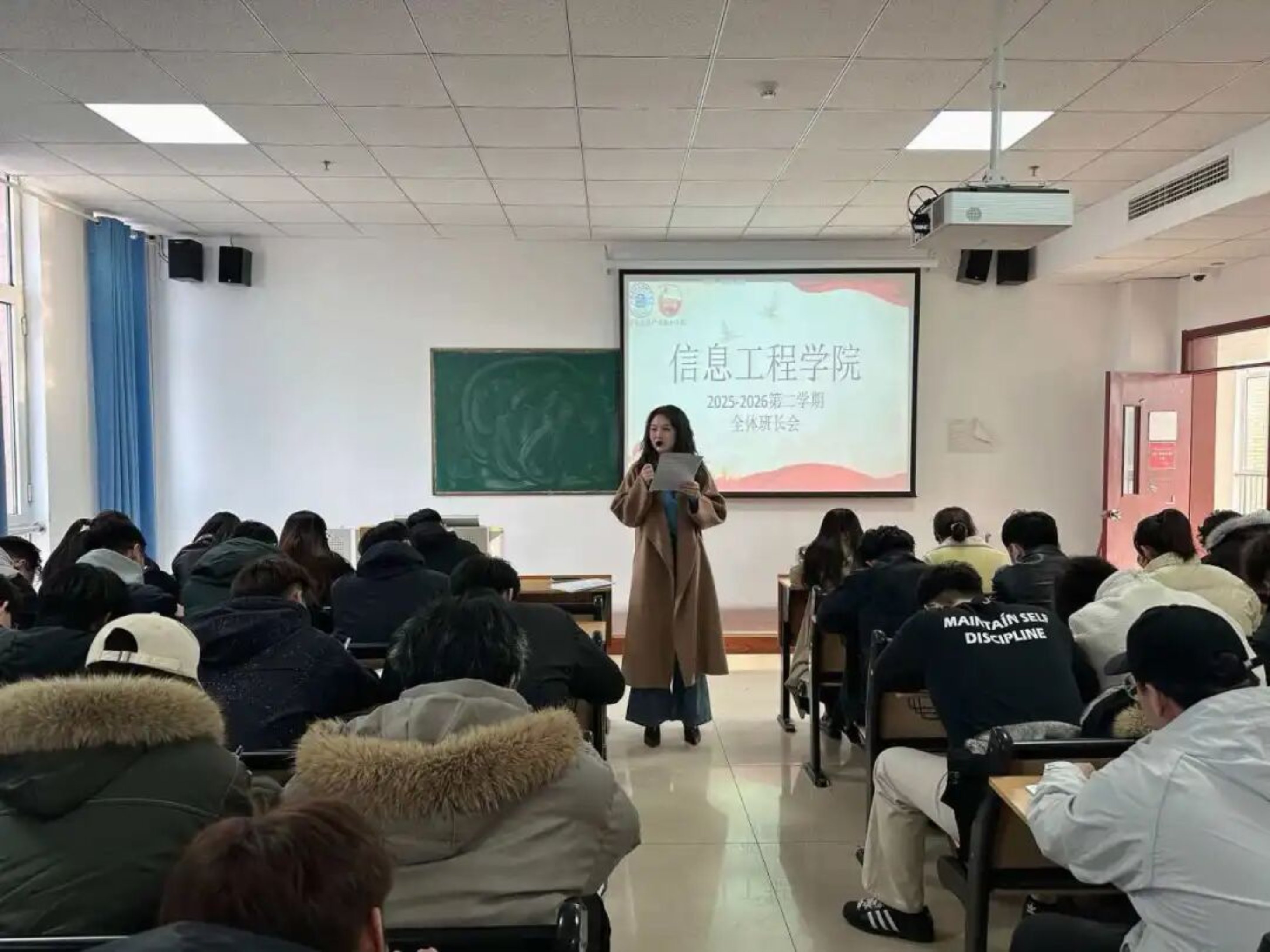 会议最后,宋主任寄语全体参会人员,岗位就是责任,履职就要担当,希望全体班长牢记自身职责,把该管的事管好、该干的事干好、该扛的责任扛起来,以实实在在的行动带好班风、做好服务、守住安全、树好形象。同时,学院感谢各位班长任职以来为班级和学院工作的辛勤付出,呼吁大家从零出发、凝心聚力,心往一处想、劲往一处使,以从严的要求、从细的落实、从快的推进,携手打造纪律严明、团结一致、积极向上的信息工程学院,为同学们的成长成才保驾护航,为学院和学校的高质量发展贡献青春力量!