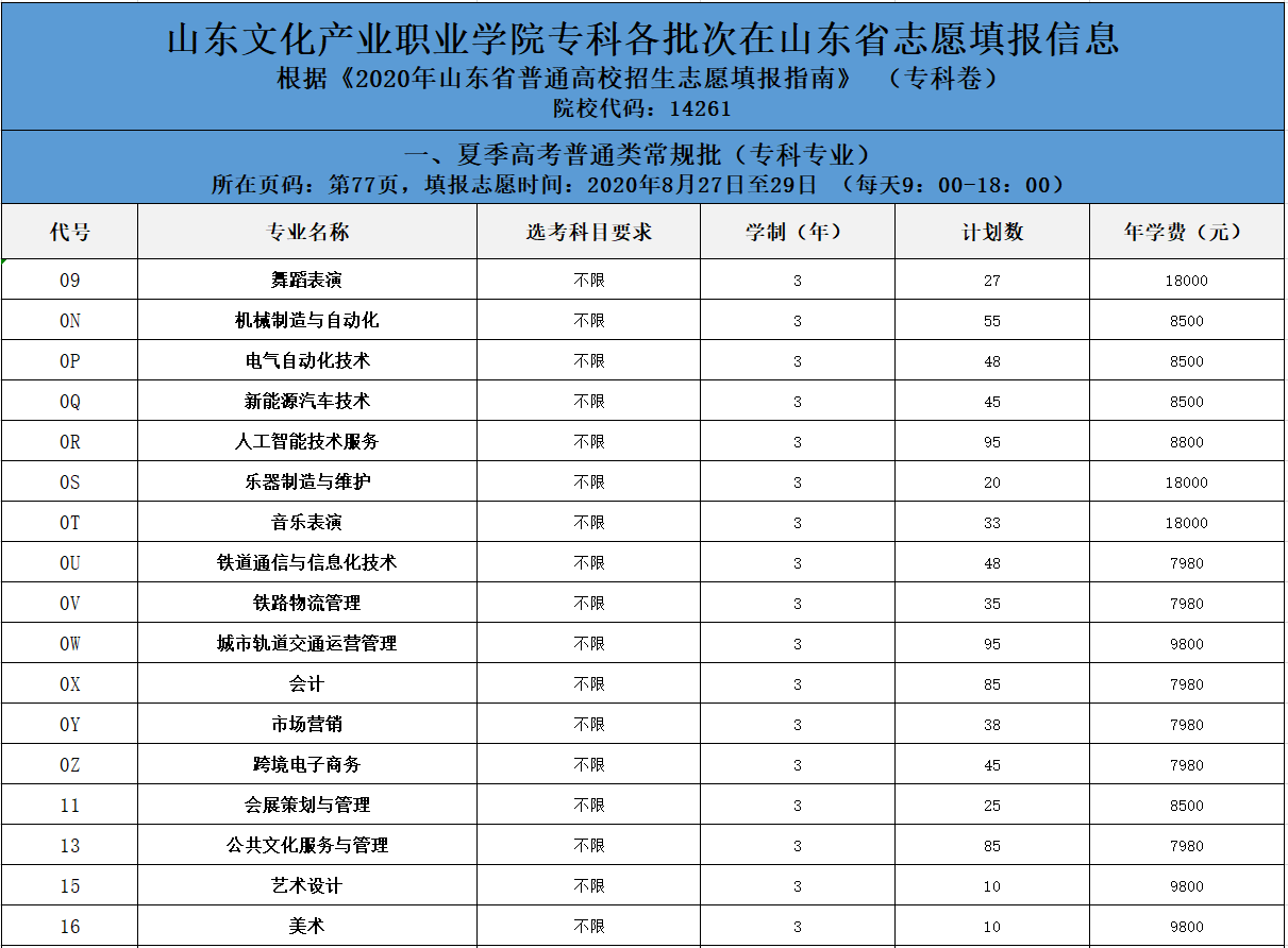 *注:以上信息以《2020年山东省普通高校招生填报志愿指南》为准。